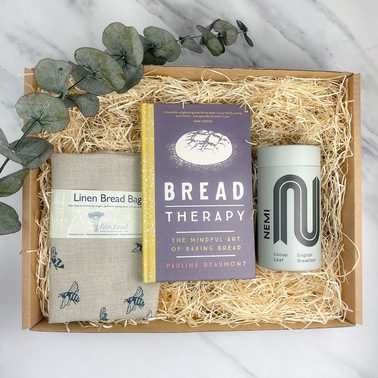 The Bread Therapy Care Box is a perfect gift for breadmakers. It comes gift-ready in our eco-packaging, hand-tied with a ribbon and a card of your choice. Please choose from our complimentary MindFill postcard or upgrade to a plantable seeded greeting card. Leave your message in the box below.